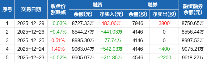 上声电子:融资净买入183.06万元,融资余额8727.33万元(12-29)