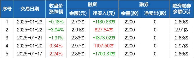 华海诚科:融资净偿还1180.83万元,融资余额2.79亿元(01-23)