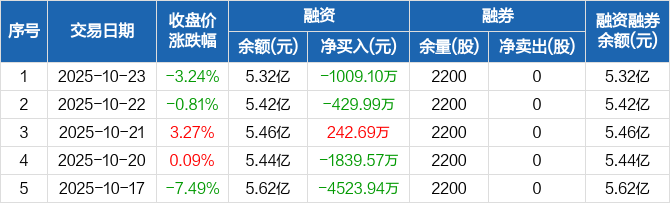 华海诚科:融资净偿还1009.1万元,融资余额5.32亿元(10-23)