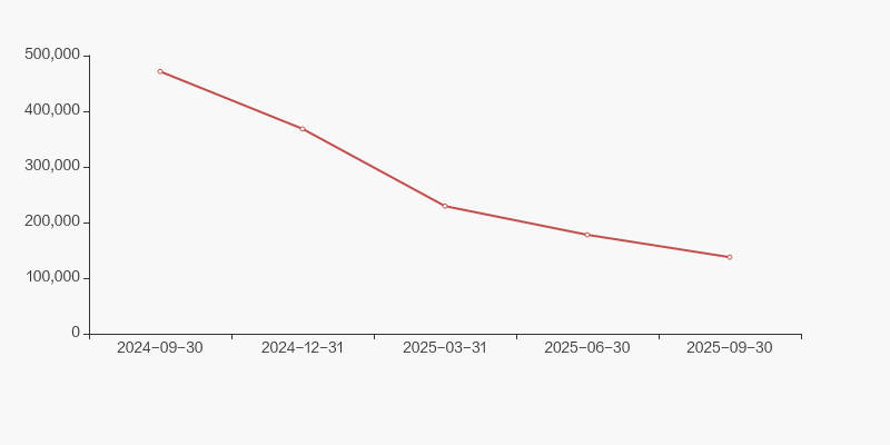 截至2025年9月30日,公司最新总股本为8069.65万股,其中流通股本为5245.55万股。户均持有流通股数量由上期的5350股下降至4069股,户均流通市值47.36万元。