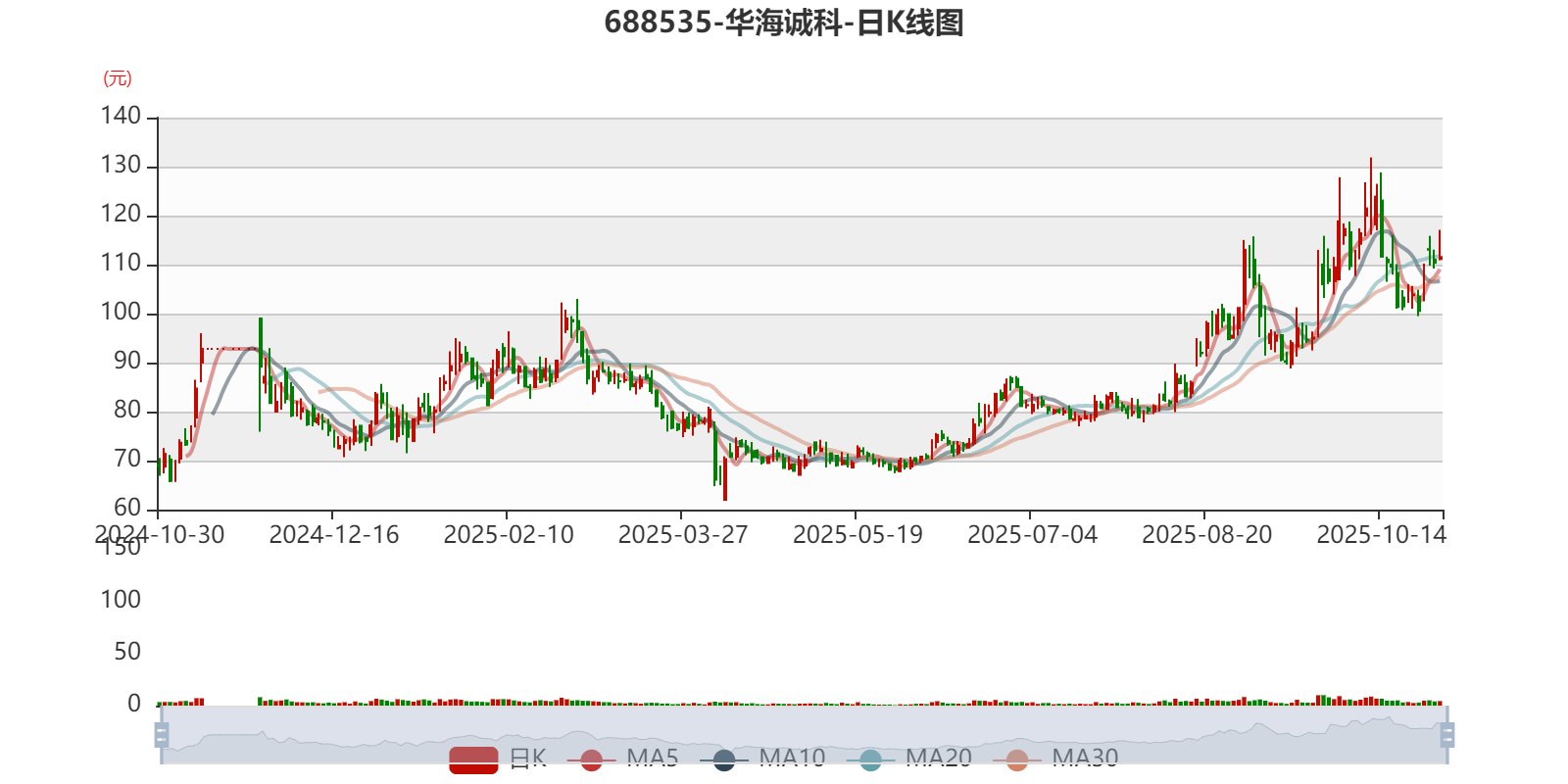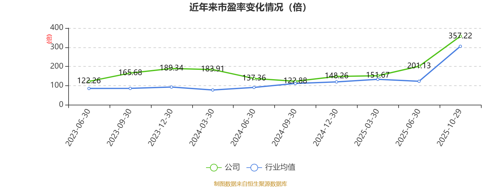 以10月29日收盘价计算,华海诚科目前市盈率(TTM)约为357.22倍,市净率(LF)约8.75倍,市销率(TTM)约24.25倍。