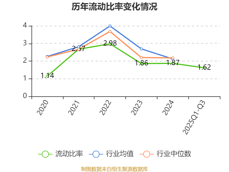 2025年前三季度,公司流动比率为1.62,速动比率为1.21。