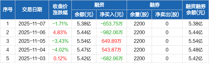 华海诚科:融资净偿还653.75万元,融资余额5.38亿元(11-07)