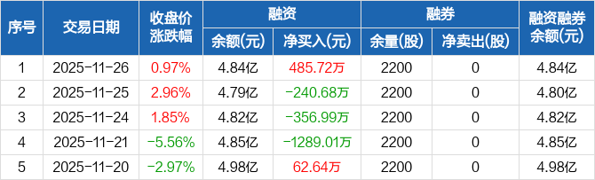 华海诚科:融资净买入485.72万元,融资余额4.84亿元(11-26)