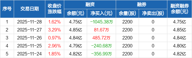 华海诚科:融资净偿还1045.38万元,融资余额4.75亿元(11-28)