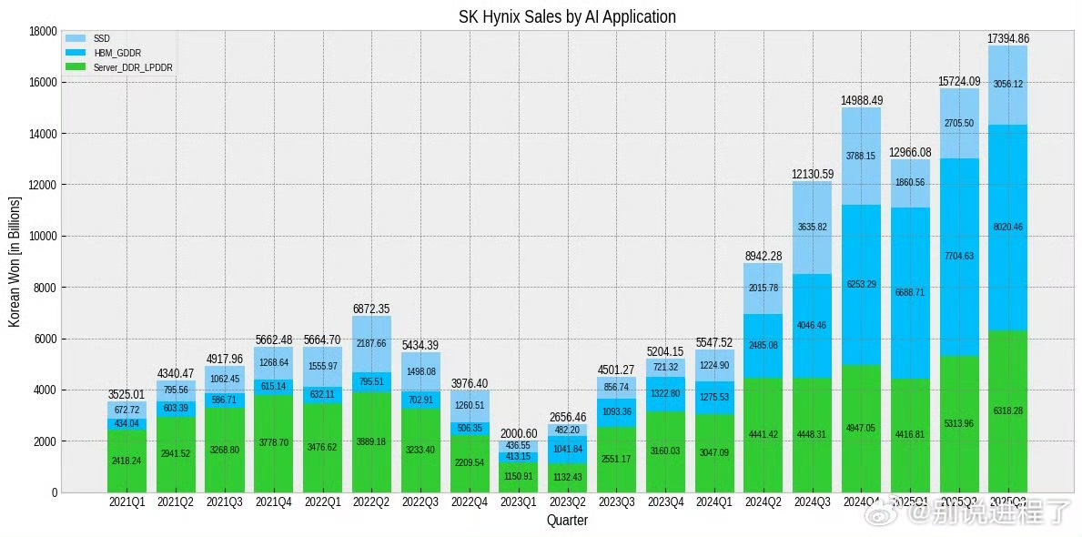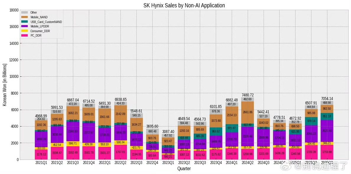 供货给sk海力士SK海力士内存销量趋势左边是AI,右边是非AI(脑和智能手机)比