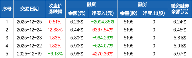 华海诚科:融资净偿还2094.85万元,融资余额6.23亿元(12-25)