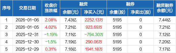 华海诚科:融资余额7.43亿元,创历史新高(01-06)
