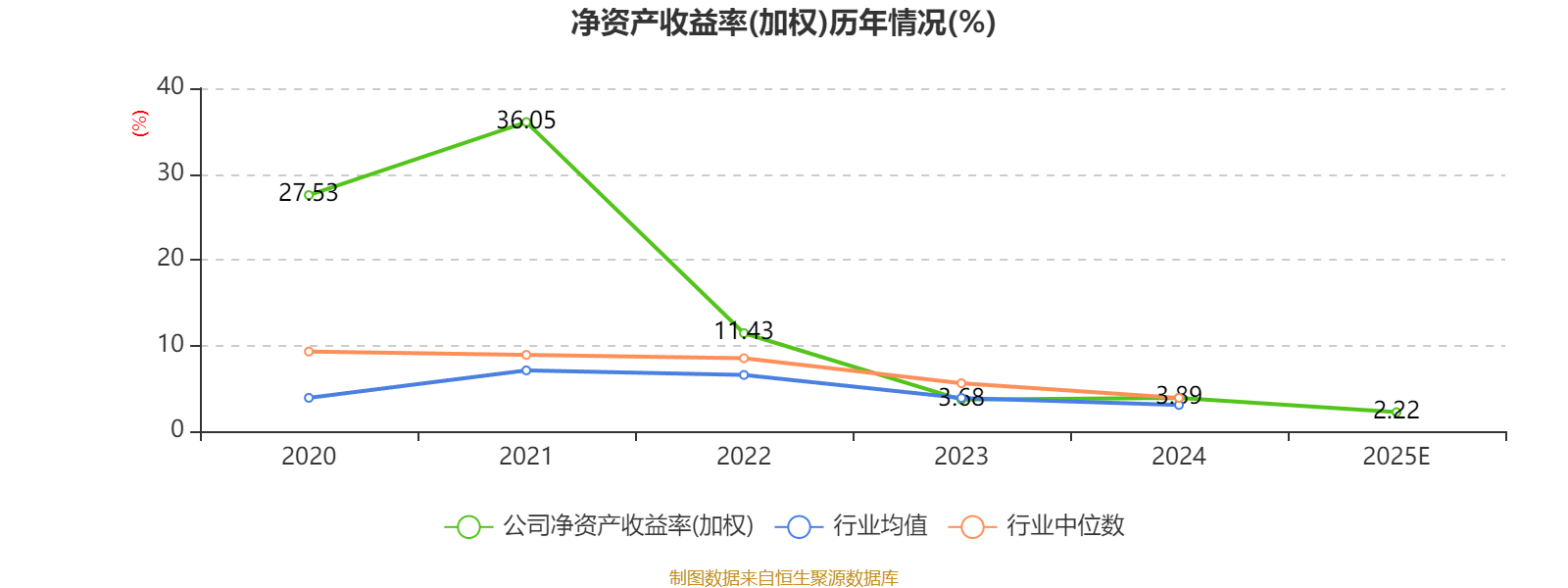 数据显示,2025年公司加权平均净资产收益率为2.22%,较上年同期下降1.67个百分点。
