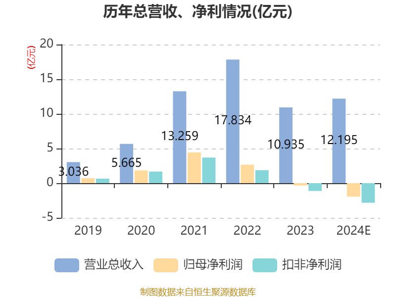 中证智能财讯思瑞浦(688536)2月27日晚间披露2024年业绩快报,公司实现营业收入12.2亿元,同比增长11.52%;归母净利润亏损1.95亿元,上年同期亏损3471.31万元;扣非净利润亏损2.83亿元,上年同期亏损1.13亿元;基本每股收益-1.48元,加权平均净资产收益率为-3.61%。以最新收盘价计算,市净率(LF)约2.9倍,市销率(TTM)约13.84倍。