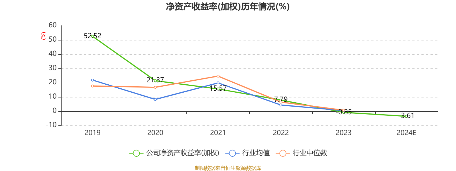 数据显示,2024年公司加权平均净资产收益率为-3.61%,较上年同期下降2.76个百分点。
