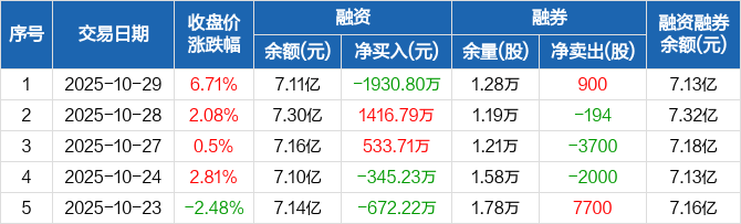 思瑞浦:融资净偿还1930.8万元,融资余额7.11亿元(10-29)