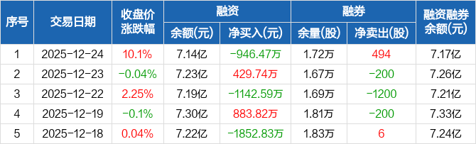 思瑞浦:融资净偿还946.47万元,融资余额7.14亿元(12-24)