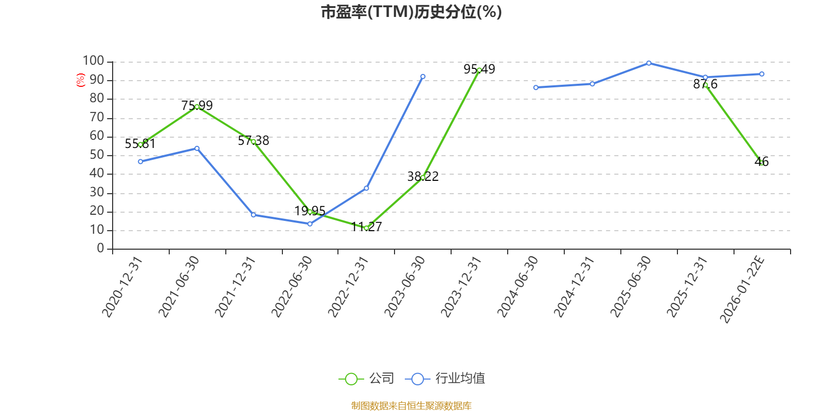 市盈率、市净率为负时,不显示当期分位数,会导致折线图中断。