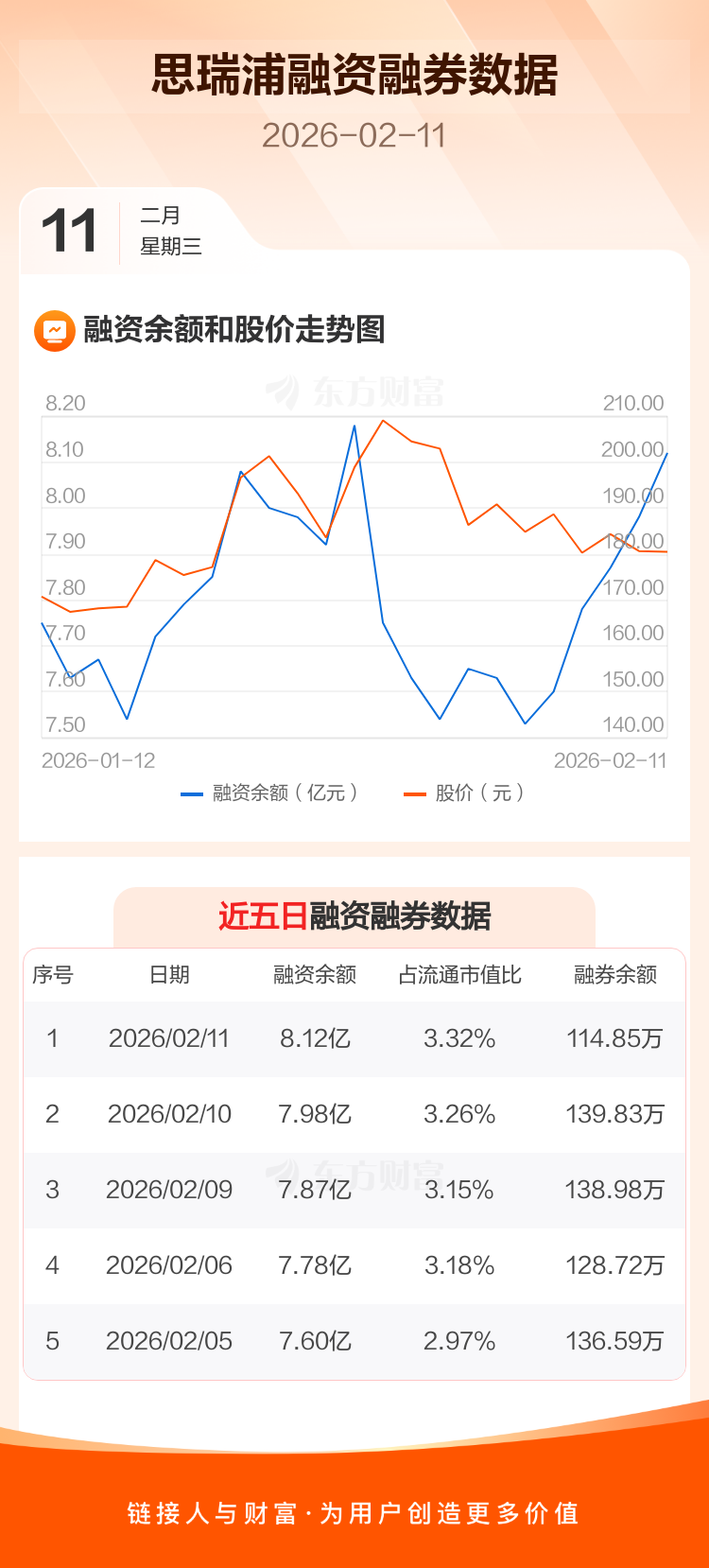 交易所最新数据显示,思瑞浦于2026年2月11日获融资买入5902.45万元,融资偿还4493.62万元,当日融资净买入1408.83万元。目前,该股融资余额8.12亿,占流通市值比例为3.32%。