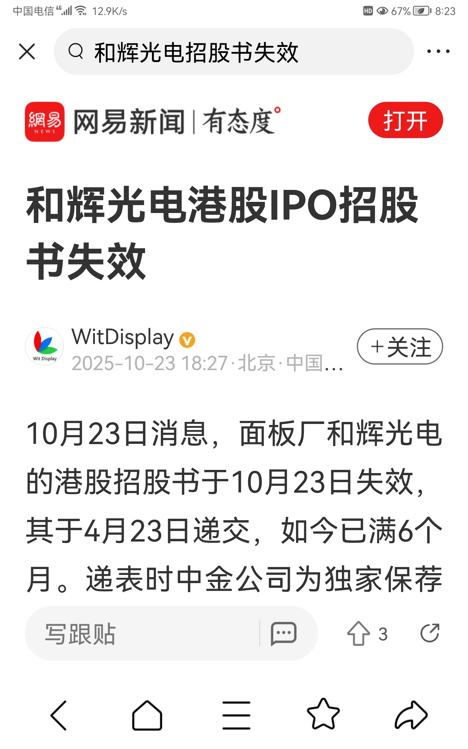 $和辉光电-U(SH688538)$