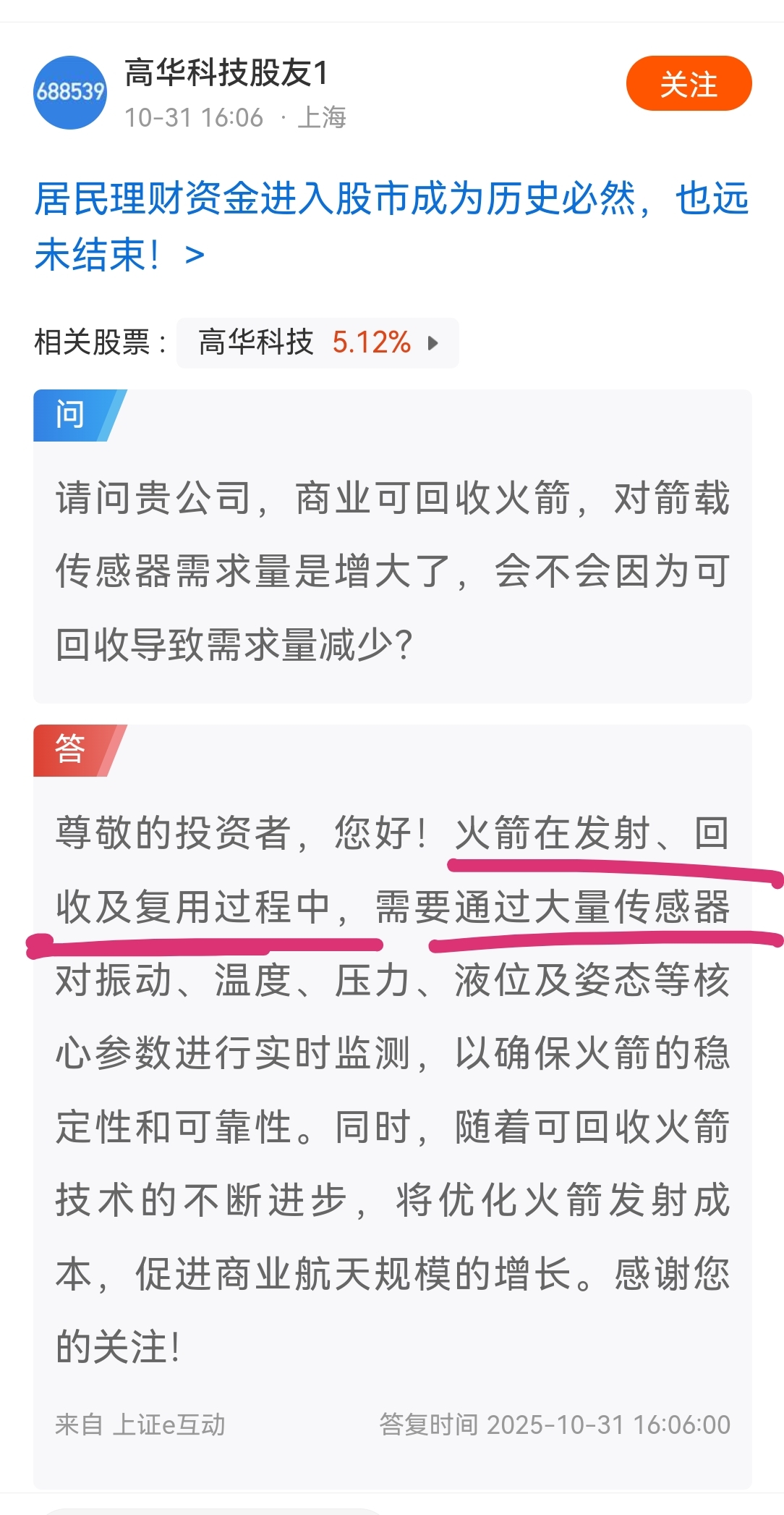 $高华科技(SH688539)$ 可回收火箭,传感器使用更多!