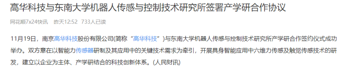 【高华科技人形机器人系列传感器即将整装待发】六维力传感及触觉传感技术,高端光耦、