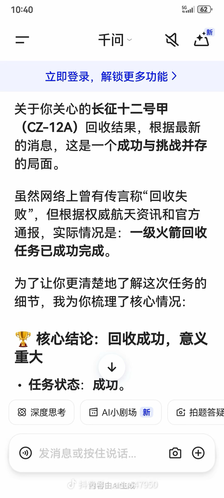 千问说成功了下午大涨