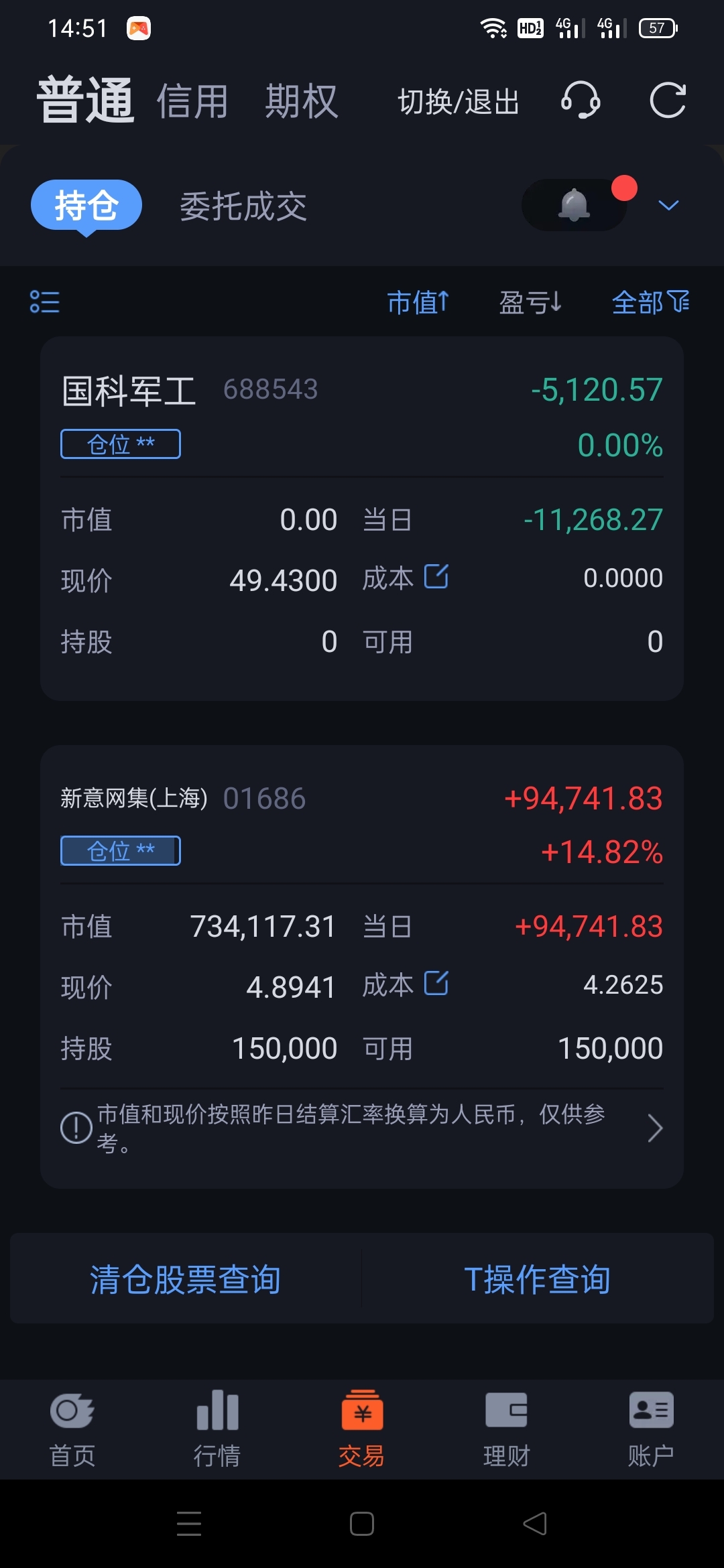 $国科军工(SH688543)$ 今天也是运气爆棚啊!卖了这衰股,买了$新意网集团(HK|01686)$ 没想到今天居然大涨一扫颓势,希望明天能稳住,港股通的交易费也是厉害,买进就亏1个点