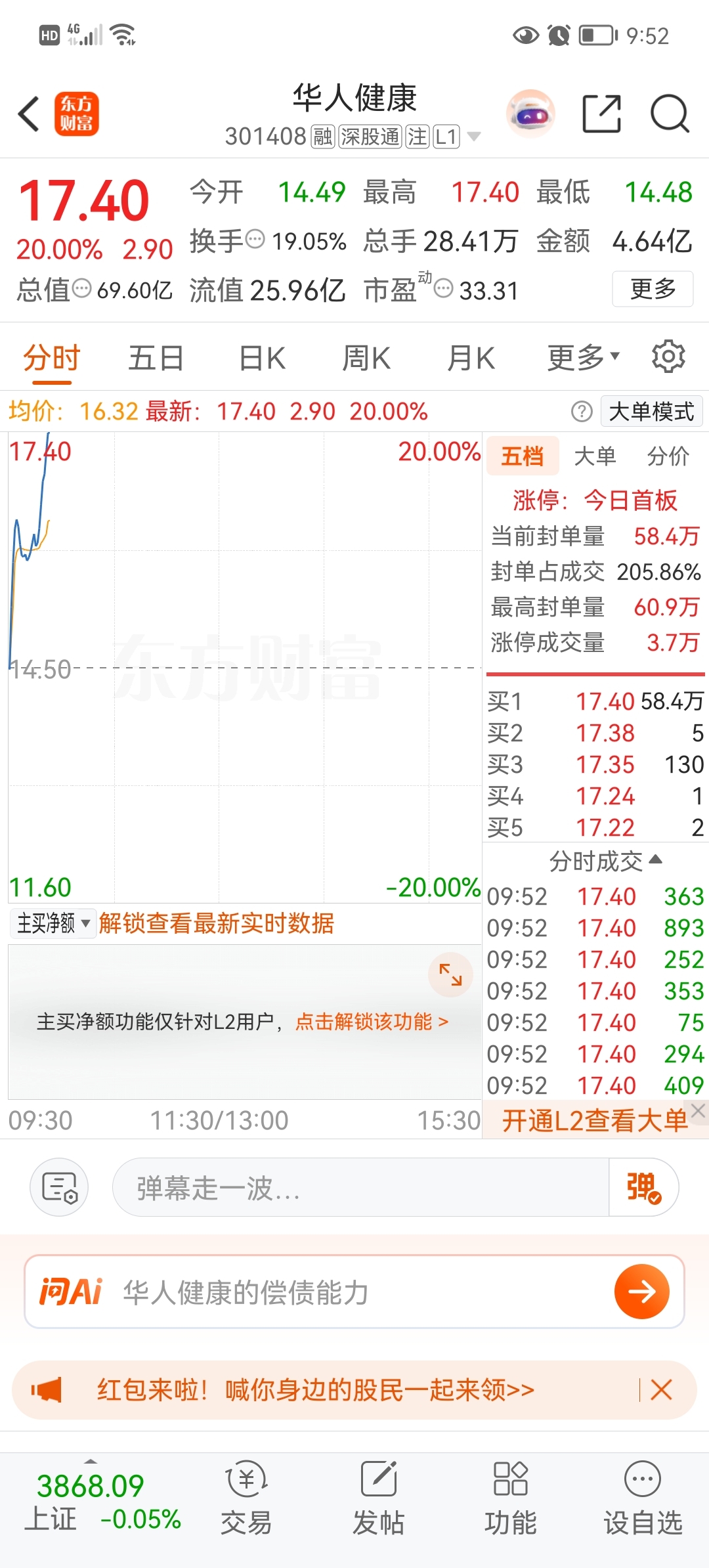昨天卖了20厘米的华人健康,买了国科,现在想S的心都有了,我跟国科有仇啊