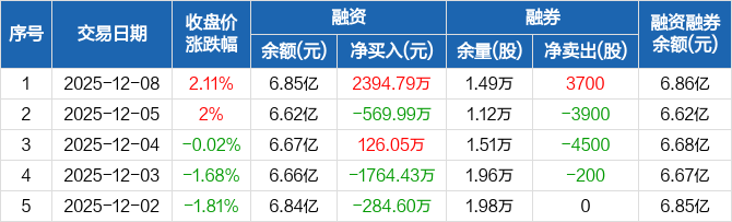 国科军工:融资净买入2394.79万元,融资余额6.85亿元(12-08)