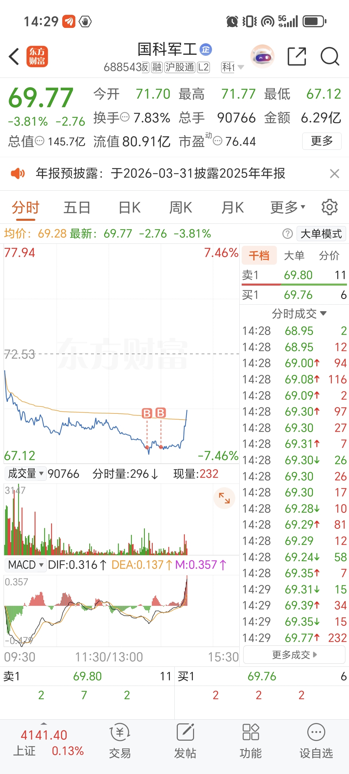 $国科军工(SH688543)$ 抄个小底