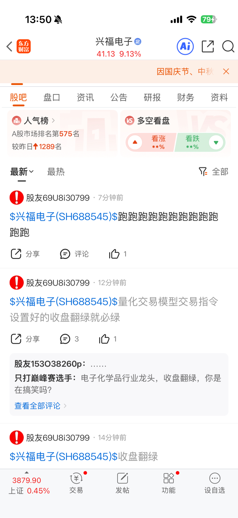 温馨提示: 1.根据《证券法》规定,禁止编造、传播虚假信息或者误导性信息,扰乱证券市场;2.用户在本社区发表的所有资料、言论等仅代表个人观点,与本网站立场无关,不对您构成任何投资建议。用户应基于自己的独立判断,自行决定证券投资并承担相应风险。《东方财富社区管理规定》