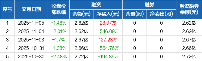 兴福电子:融资净买入28.97万元,融资余额2.62亿元(11-05)