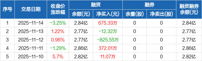 兴福电子:融资净买入675.33万元,融资余额2.84亿元(11-14)
