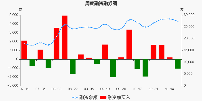 兴福电子本周(2025/11/17-2025/11/21)累计跌幅达12.45%,截至11月21日最新股价报收32.35元。从增量上来看,11月17日至11月21日融资买入交易规模1.53亿元,融资偿还规模1.64亿元,期内融资净偿还1049.58万元。从存量上来看,截止11月23日,兴福电子融资融券余额2.74亿元,其中融资余额规模2.74亿元,融券余额规模0元。
