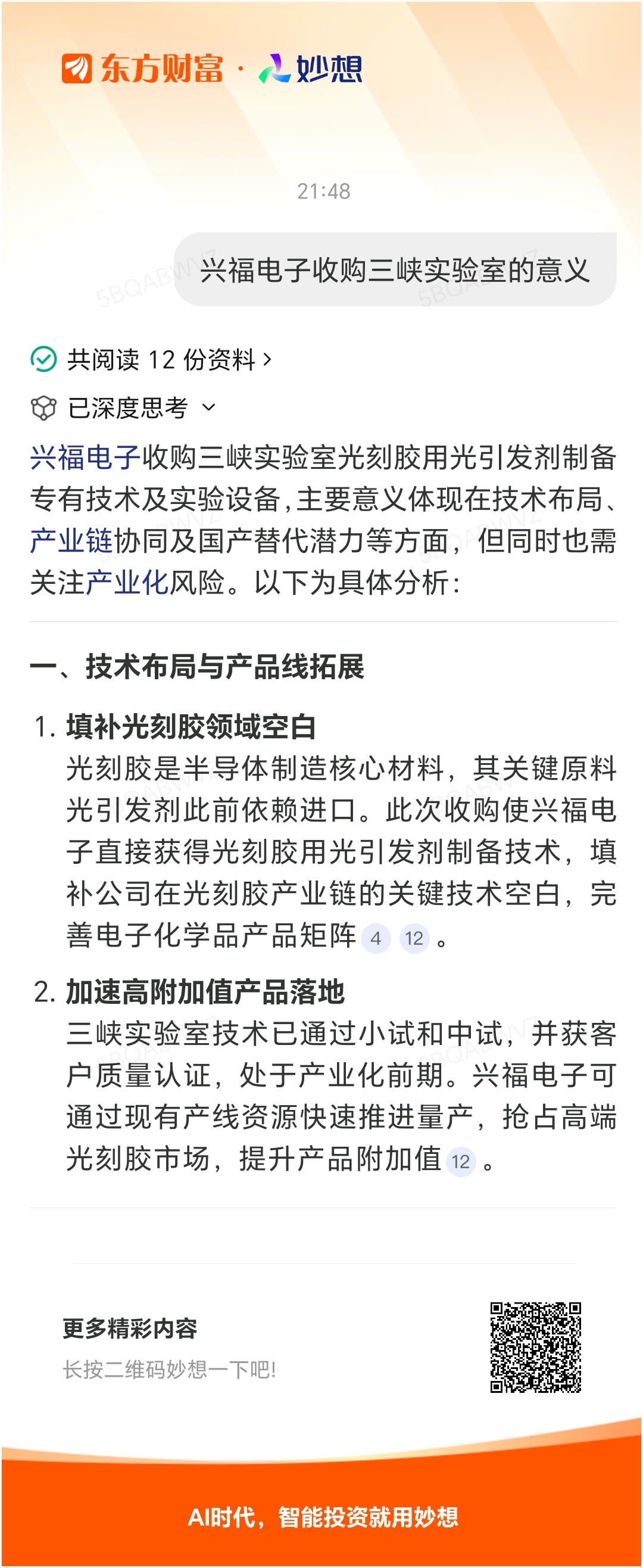 #@妙想,你怎么看?# 妙想一下:兴福电子收购三峡实验室的意义
