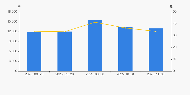 截至2025年11月30日,公司最新总股本为3.6亿股,其中流通股本为7288.36万股。户均持有流通股数量由上期的5459股上升至5601股,户均流通市值18.8万元。