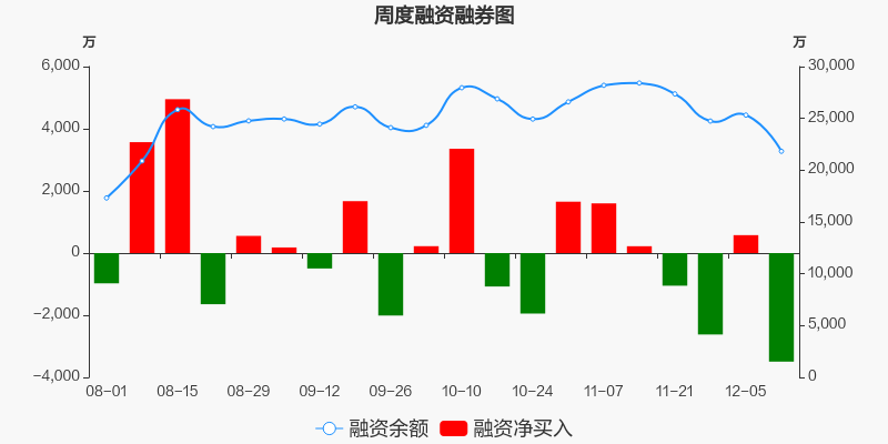 兴福电子本周(2025/12/08-2025/12/12)累计涨幅达13.12%,截至12月12日最新股价报收37.16元。从增量上来看,12月8日至12月12日融资买入交易规模1.55亿元,融资偿还规模1.9亿元,期内融资净偿还3492.08万元。从存量上来看,截止12月14日,兴福电子融资融券余额2.18亿元,其中融资余额规模2.18亿元,融券余额规模0元。
