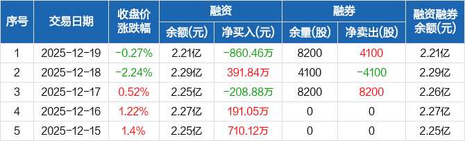 兴福电子:融资净偿还860.46万元,融资余额2.21亿元(12-19)