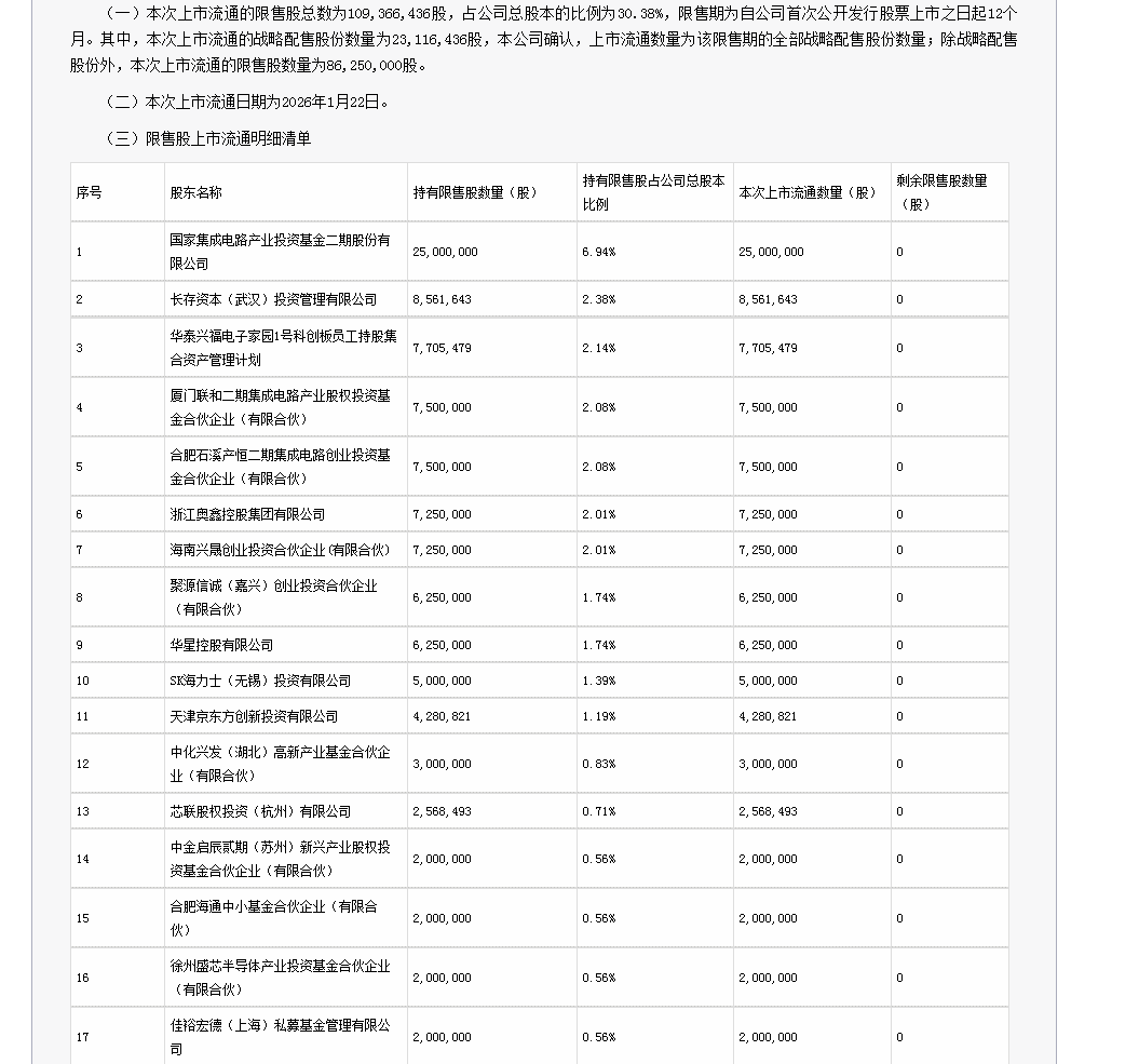 1月22日,有这么些战投解禁,除了二期大基金是4.8元/股。其他的都是1元左右入
