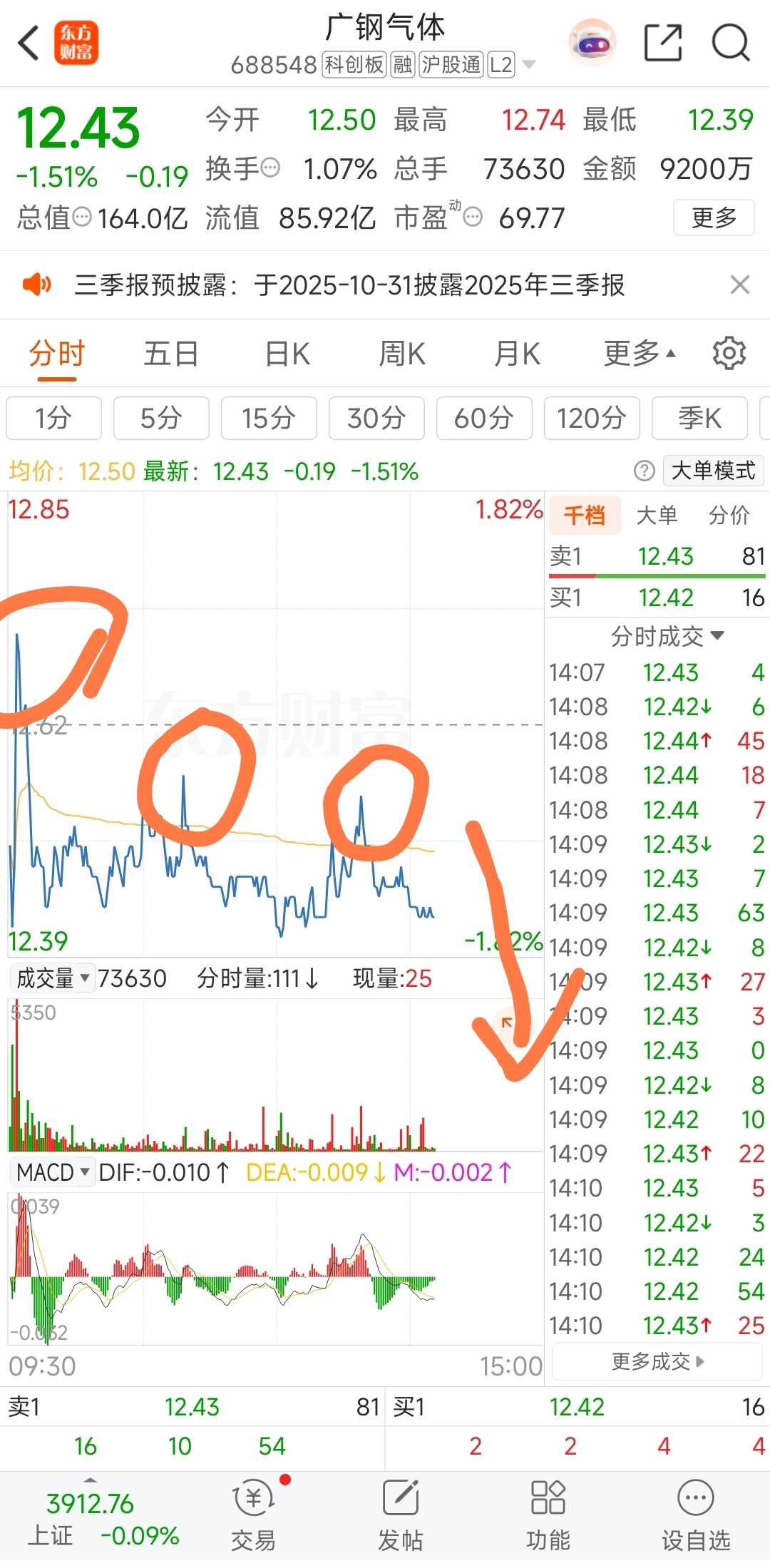 $广钢气体(SH688548)$ 一跳两跳三四跳!有人看到我昨天泄露的秘密,气急败坏拉了一波,但是没钱啦,也当俎上肉,跳水表演开始!,比昨天更低!哈哈