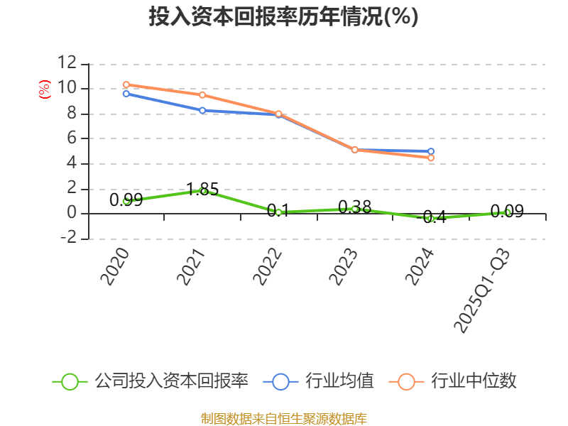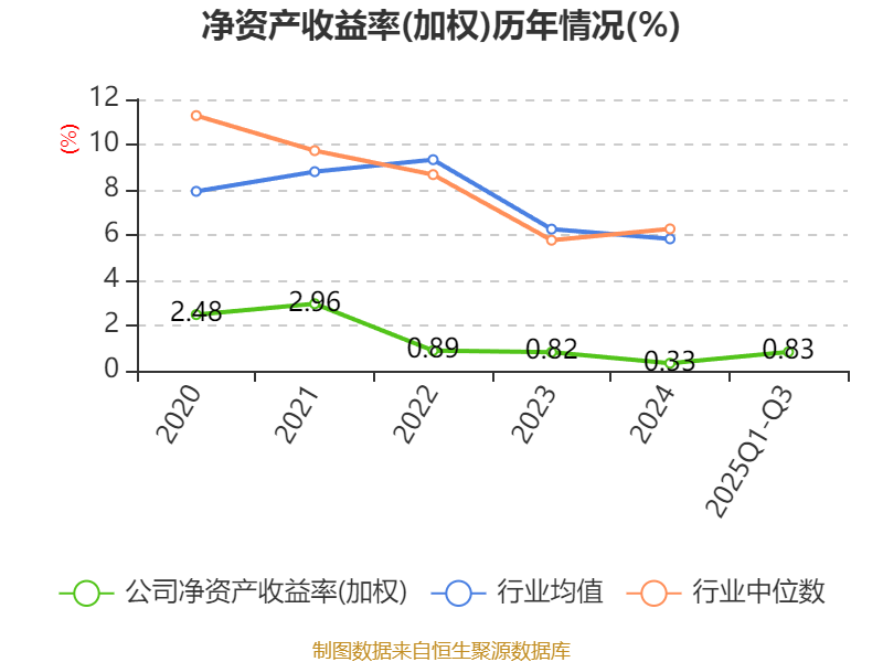 盈利能力方面, 2025年前三季度公司加权平均净资产收益率为0.83%,同比下降0.15个百分点。公司2025年前三季度投入资本回报率为0.09%,较上年同期下降0.15个百分点。