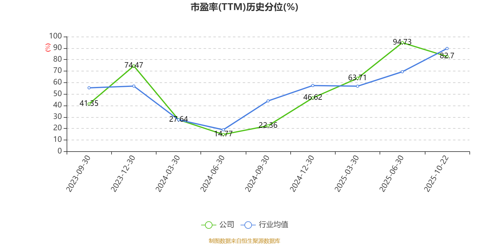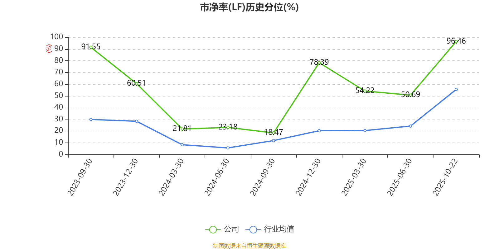 市盈率、市净率为负时,不显示当期分位数,会导致折线图中断。