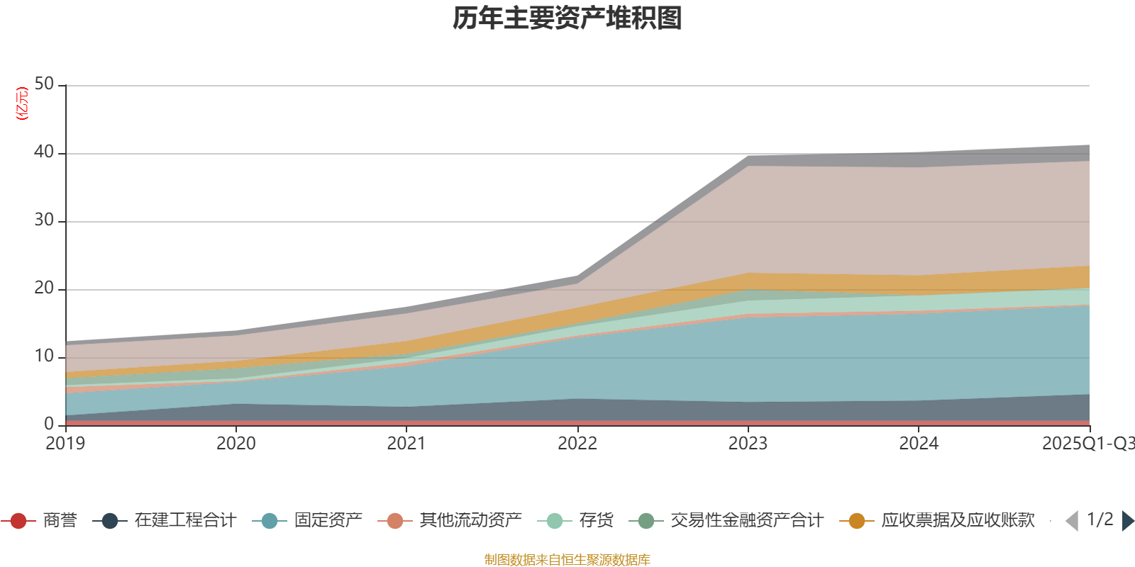 资产重大变化方面,截至2025年三季度末,公司货币资金较上年末减少2.92%,占公司总资产比重下降2.14个百分点;在建工程合计较上年末增加31.85%,占公司总资产比重上升2.1个百分点;应收款项融资较上年末减少69.25%,占公司总资产比重下降0.72个百分点;其他流动资产较上年末减少55.04%,占公司总资产比重下降0.6个百分点。