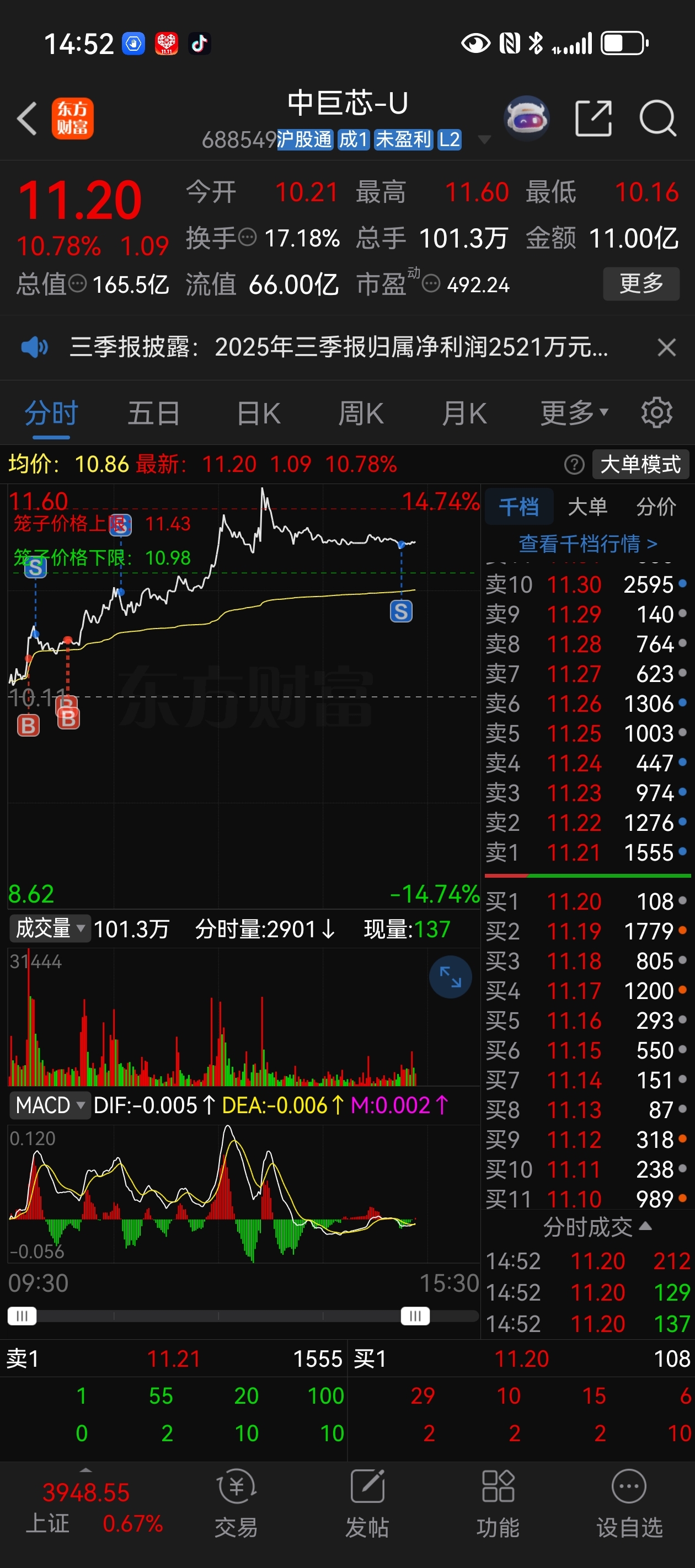 $中巨芯-U(SH688549)$ 今天补的半仓走了