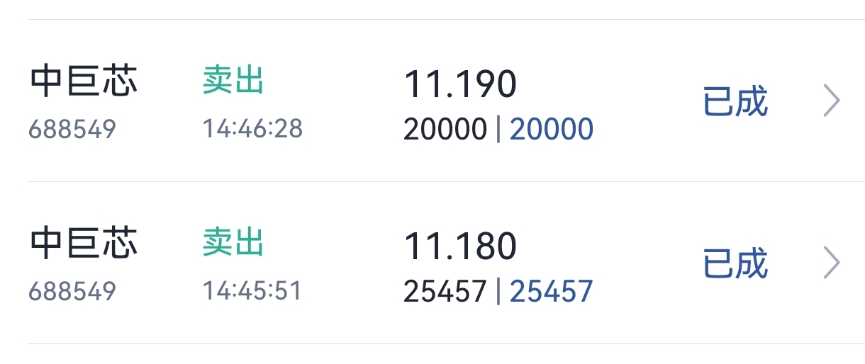 $中巨芯-U(SH688549)$ 先清了,下周再看