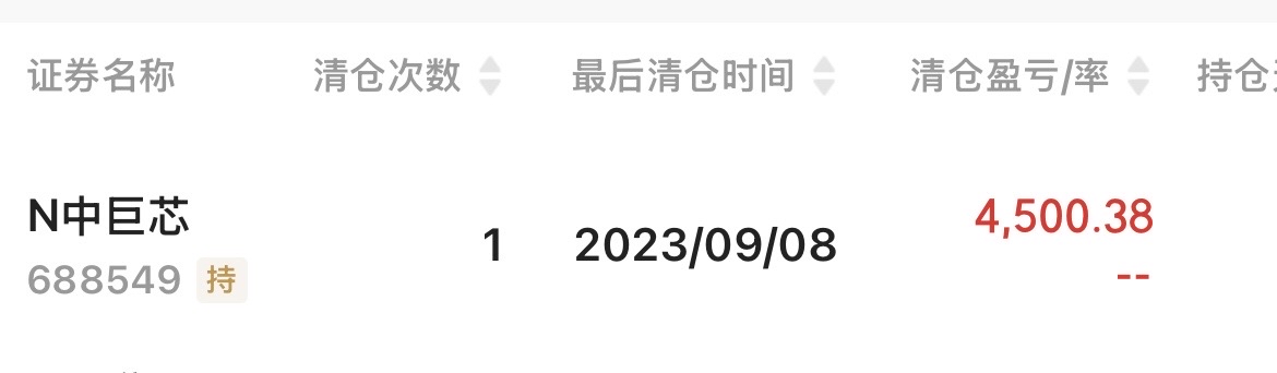 $中巨芯-U(SH688549)$ 清仓了哈,先走为敬、溜了先;打新到现在都没赚到啥钱的,被折腾死啦,大新赚了也就小4.5K,后来觉得这票可能有机会,就再入,结果是漫长的被套,打新赚的也归还、一路走来的......