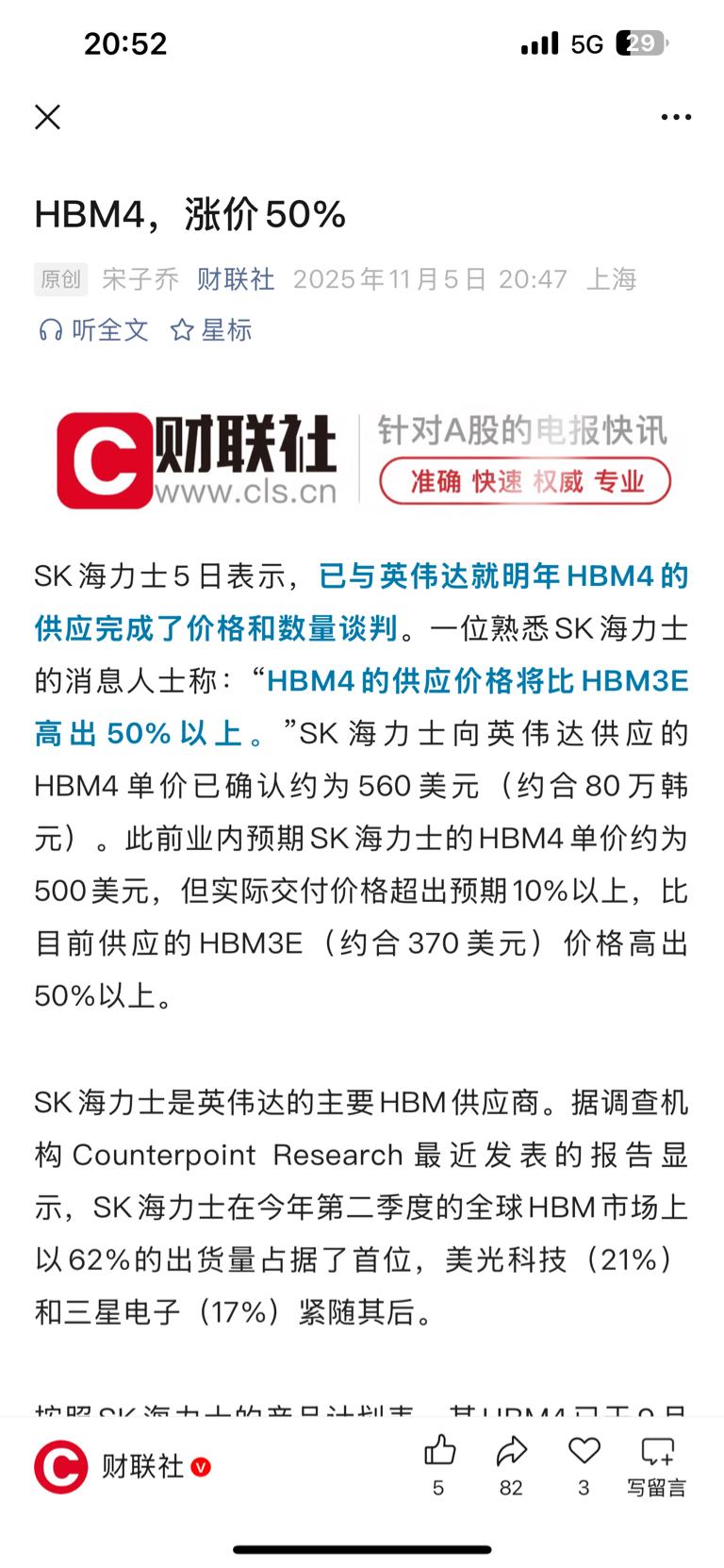 中巨芯是海力士HBM的供货商。看来明天真的要20厘米了