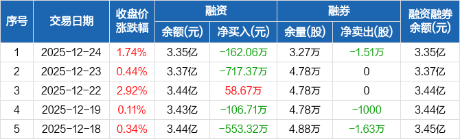 中巨芯:融资净偿还162.06万元,融资余额3.35亿元(12-24)