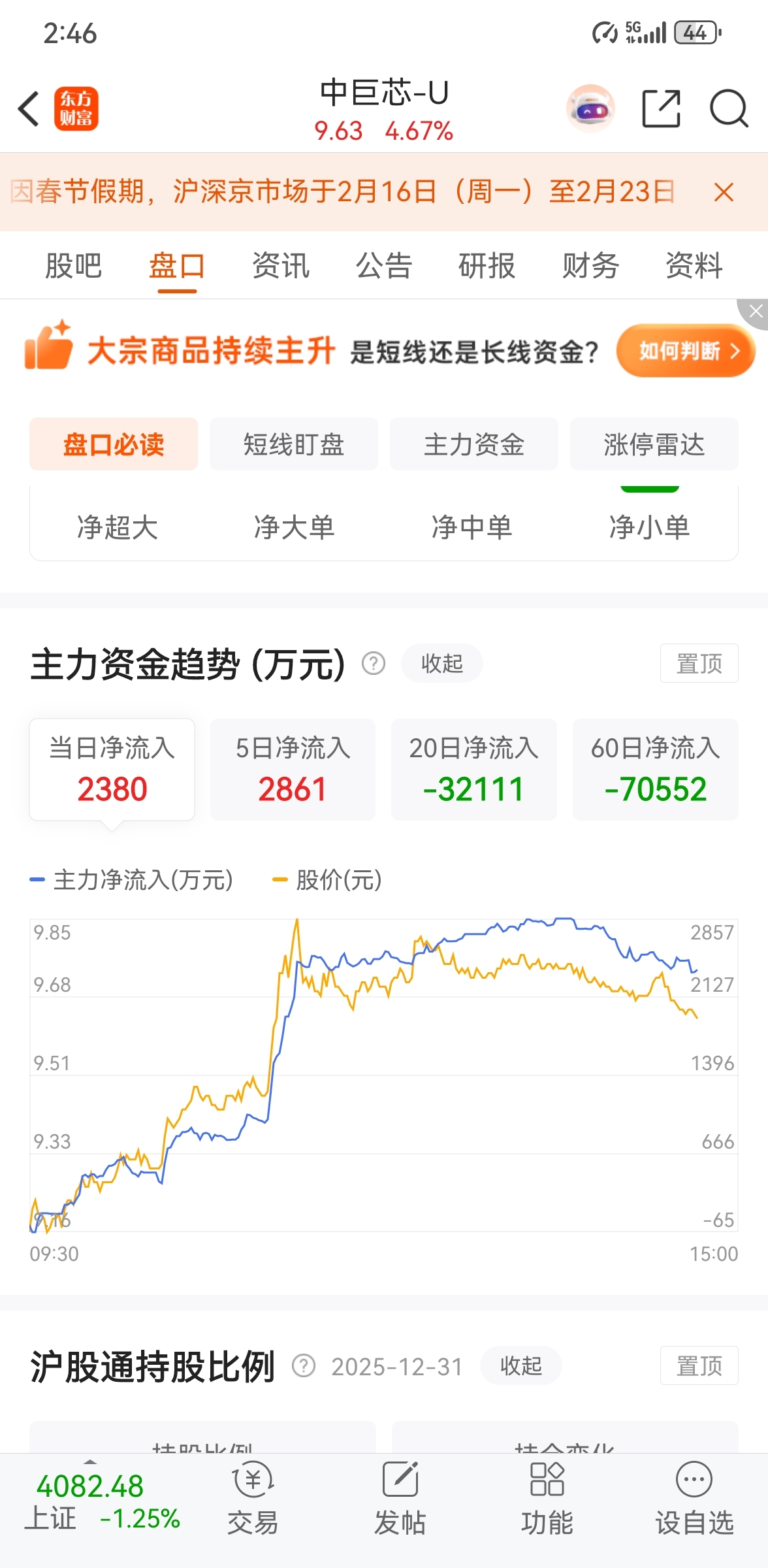 $中巨芯-U(SH688549)$ 60天流出6个多亿