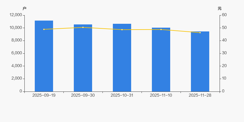 2025年9月19日至今,公司股东户数显著下降,区间跌幅为15.30%。2025年9月19日至2025年11月28日区间股价下降5.31%。