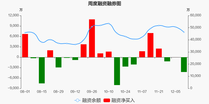 瑞联新材本周(2025/12/08-2025/12/12)累计跌幅达2.24%,截至12月12日最新股价报收45.84元。从增量上来看,12月8日至12月12日融资买入交易规模7704.19万元,融资偿还规模1.2亿元,期内融资净偿还4267.06万元。从存量上来看,截止12月14日,瑞联新材融资融券余额4.63亿元,其中融资余额规模4.63亿元,融券余额规模0元。
