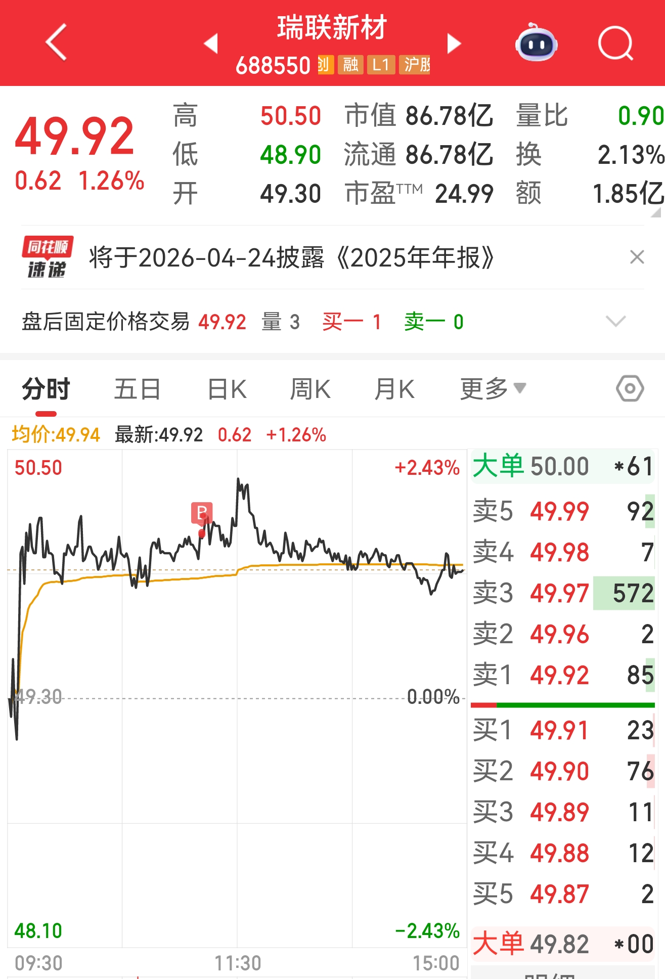 $瑞联新材(SH688550)$ 继续加仓,似乎是涨不停,不停涨的节奏哈!