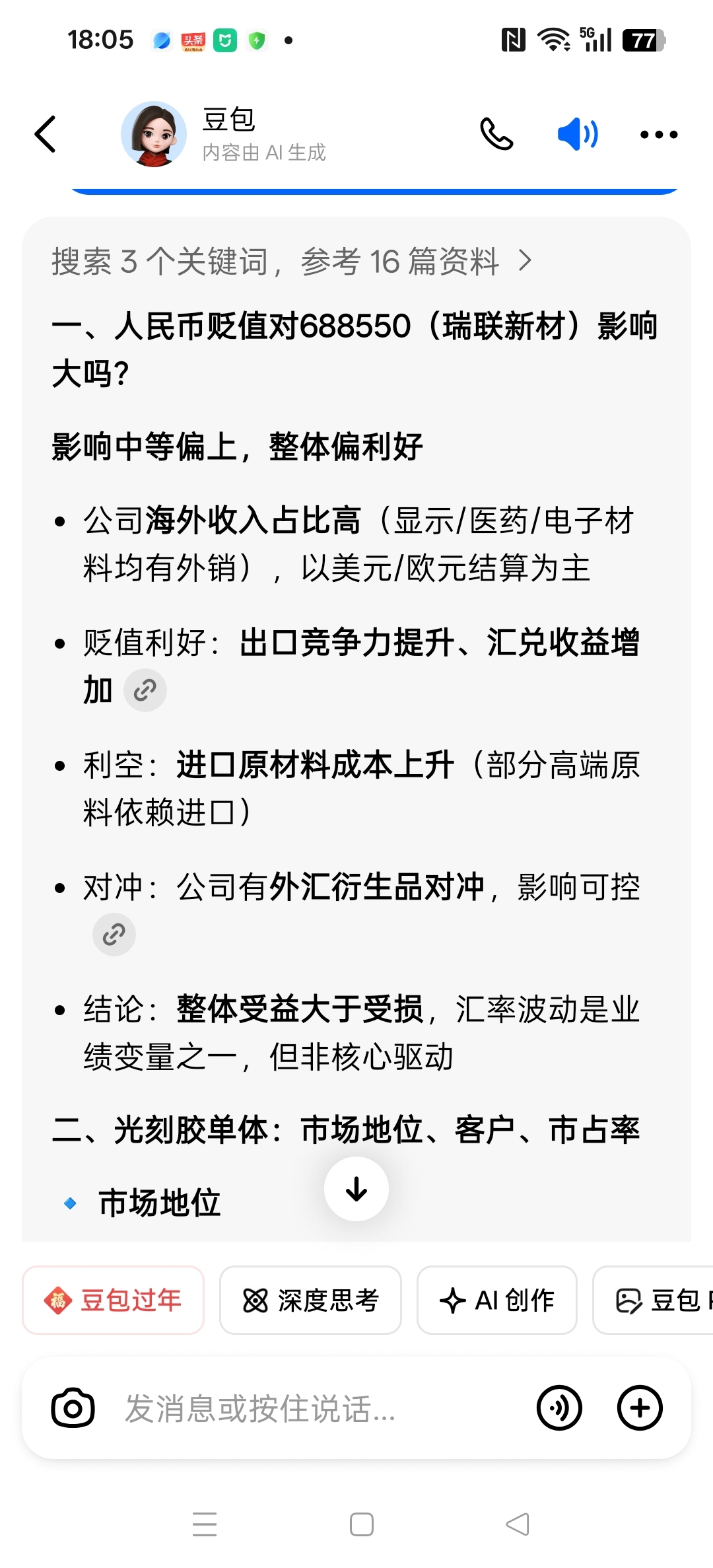 $瑞联新材(SH688550)$ 维持两年内150元目标价格,公司受人民币升值影响不大,甚至是利好。公司光刻胶单体市场占有率领先,是光刻胶公司的上游,目前22倍市盈率,150块到2027年预期才50倍市盈率,极端情况下冲300块。买几万股锁仓两年不动。